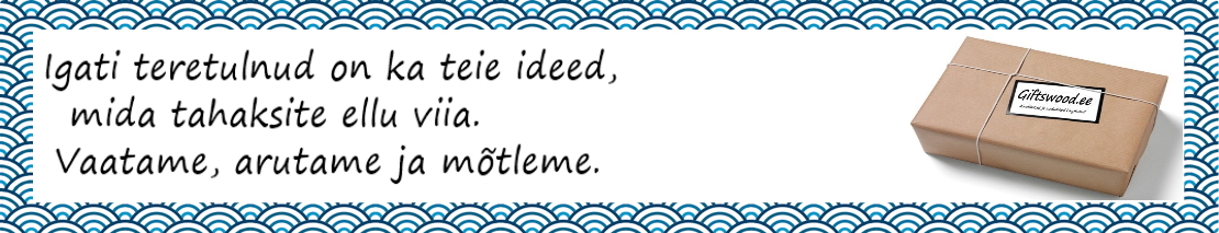 Soovid ainulaadset kingitust? Siis vali personaalse sõnumiga kingitused.See jääb kauemaks mälestuseks.Valmistame ainulaadseid kingitusi vastavalt kliendi soovile kiirelt ja kvaliteetselt.Enamus tooteid on valmistatud käsitööna.Tavaliselt toote hinnas on üks graveering kui soovite mitu graveeringut võtke meiega ühendust et täpsustada lisa graveeringu hind.Foto töötlus ja graveerimine tavatoodetel on lisa tasuga 20€.Kiirtellimuse tasu on alates 10€ oleneb tootest.